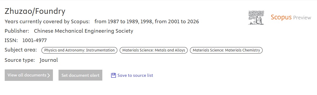 Zhuzao/Foundry Journal is an independent organization delivering support and services to educators and researchers in all around the world.